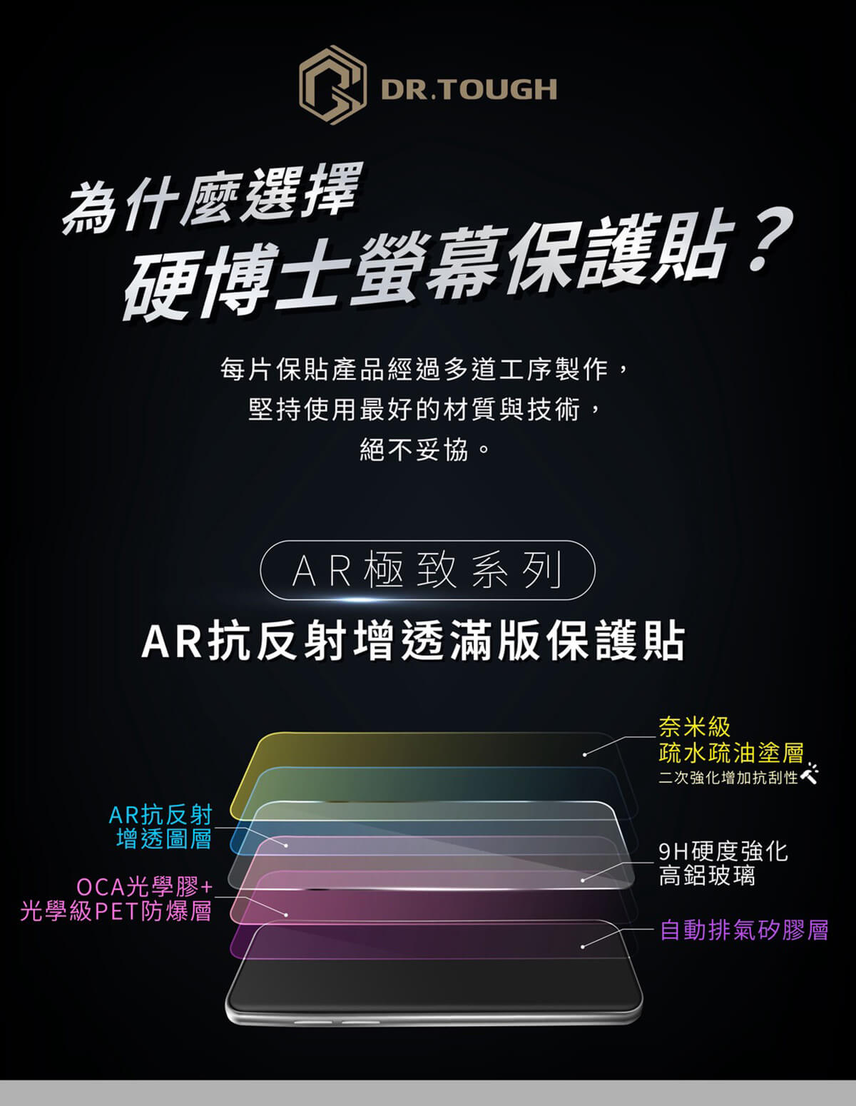 • DR.TOUGH硬博士-極致系列 滿版玻璃保護貼(AR亮面) #iPhone亮面保護貼