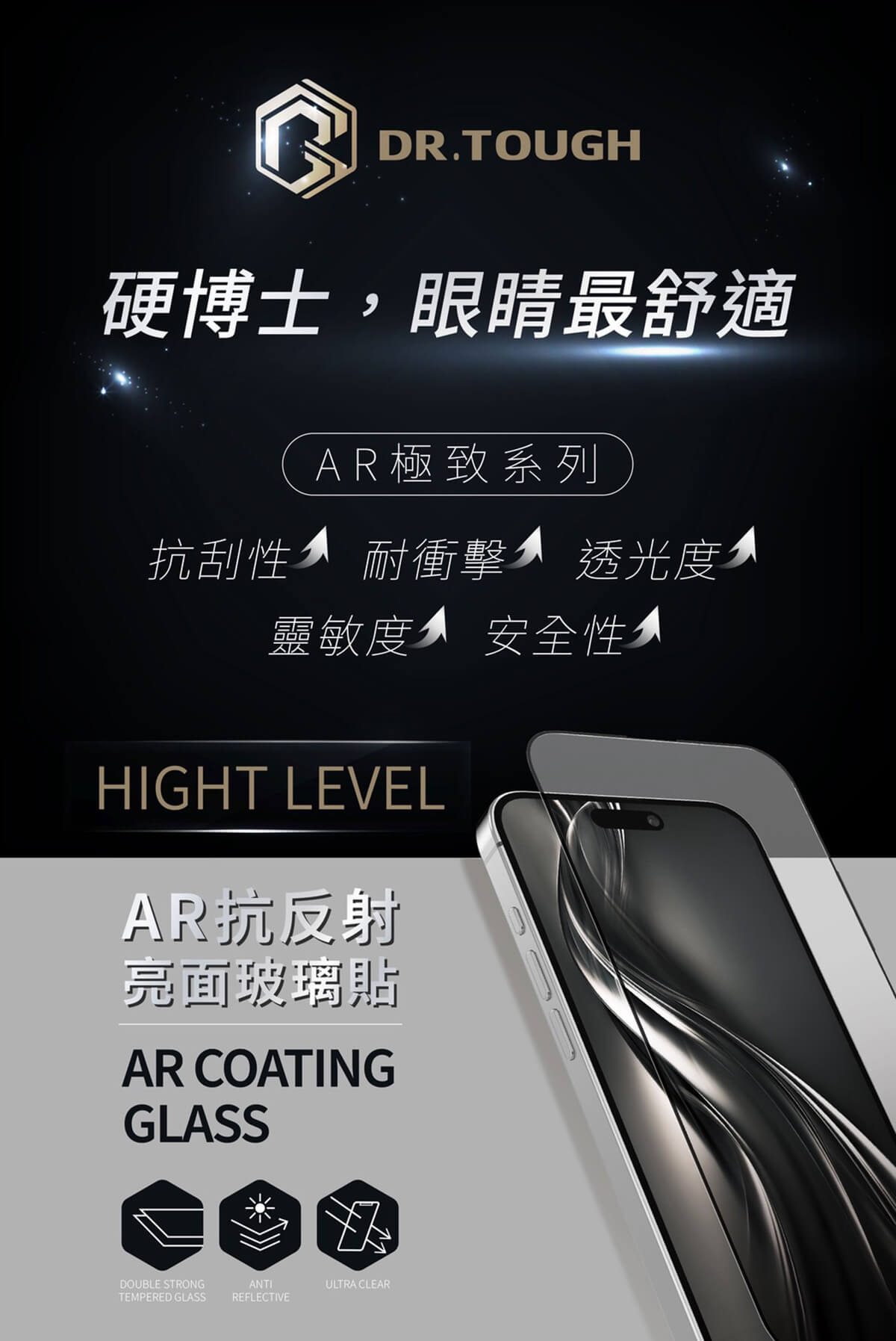 DR.TOUGH硬博士-極致系列 滿版玻璃保護貼(AR亮面) #iPhone亮面保護貼